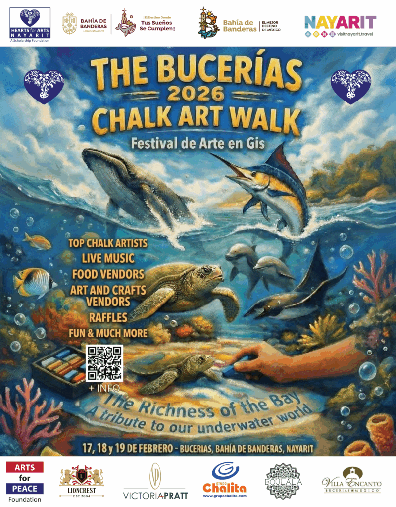 Los próximos martes 17, miércoles 18 y jueves 19 de febrero, la Zona Dorada de Bucerías se convertirá en una galería a cielo abierto con la realización del “The Bucerías Chalk Art Walk 2026 – Festival de Arte en Gis”, uno de los eventos culturales más esperados del año.