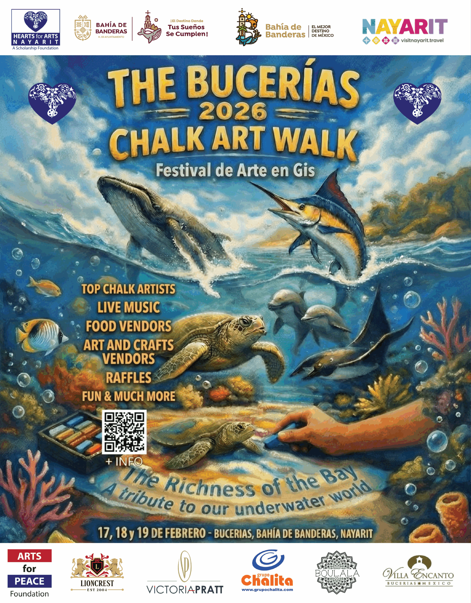 En la tercer semana de febrero martes, miércoles y jueves, calles de la zona dorada se llenan de arte, color, movimiento y música. En uno de los eventos mas esperados del pueblo donde podrás disfrutar de increíbles creaciones artísticas hechas de gis en las calles de Bucerías, venta de comida y artesanías, además de entretenimiento, sin duda uno de los eventos mas esperados del año. Además, una parte de lo que se genera en el festival es destinado al desarrollo del arte en niños.